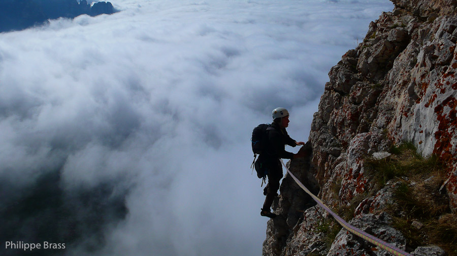 L'escalade dans les Dolomites revêt de nombreux aspects, outre les aspects techniques imposés par l'escalade traditionnelle sans l'usage des spits, l'ambiance qui règne dans les parois est tout particulièrement marquante.