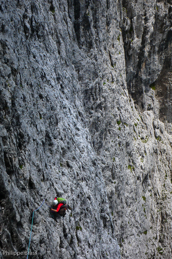 Escalade fantastique, haut perchée au dessus du val Canali, c'est un florilège de trous et autres reliefs du genre. Protection éparses, itinéraire direct et passages engagés. 100% Pale di San Martino