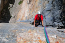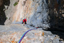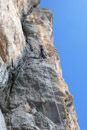 Courte certe, mais oh combien intense cette voie est une perle. Une gaterie au soleil à deux pas de la 'parete de parete' . Ouverte en solitaire par Domenico Bellenzier qui ne trouvait personne pour le suivre dans ses entreprises osées.