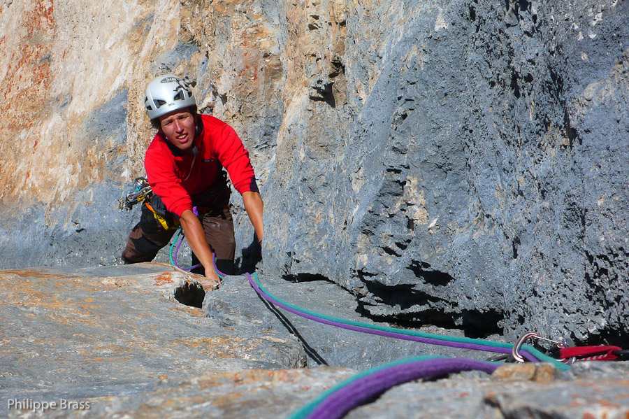 Courte certe, mais oh combien intense cette voie est une perle. Une gaterie au soleil à deux pas de la 'parete de parete' . Ouverte en solitaire par Domenico Bellenzier qui ne trouvait personne pour le suivre dans ses entreprises osées.