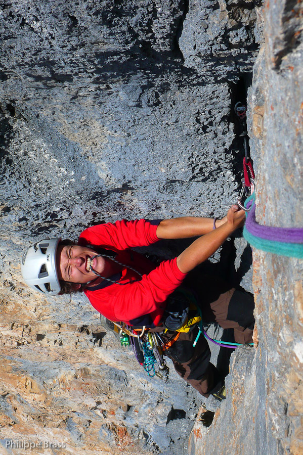 Courte certe, mais oh combien intense cette voie est une perle. Une gaterie au soleil à deux pas de la 'parete de parete' . Ouverte en solitaire par Domenico Bellenzier qui ne trouvait personne pour le suivre dans ses entreprises osées.