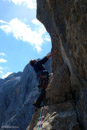 Courte certe, mais oh combien intense cette voie est une perle. Une gaterie au soleil à deux pas de la 'parete de parete' . Ouverte en solitaire par Domenico Bellenzier qui ne trouvait personne pour le suivre dans ses entreprises osées.